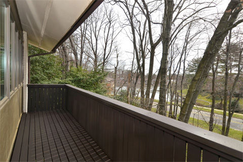 The balcony off of the Master Bedroom ... with the lake through the trees |