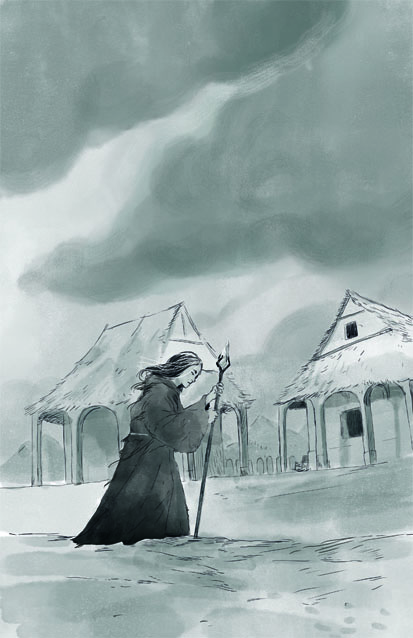 Illustration #05—Ilsa stalking through the Children's Village. |